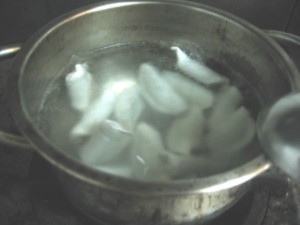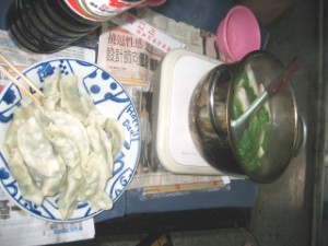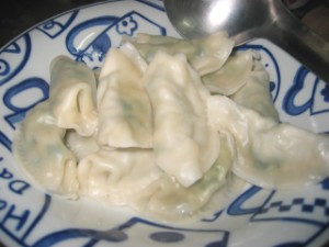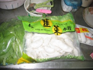 第一盤煮好的韭菜水餃,看起來頗正常的…