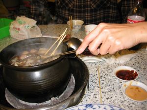晚上九點半結束,馬上坐捷運到西門,再搭計程車到中華路和南門路那邊與清純小玫瑰、西瓜兄、3D Jana一起吃薑母鴨,3D Jana這傢伙在網路上一直跟我搶著喊清純小玫瑰為丈母娘,讓我倍受威脅,可是當我見到他本人時,我放心了,因為我肯定比他帥(噗哈哈哈!!嘔不嘔?3D Jana你嘔不嘔?)。圖中照片為「即將去Hawaii渡假的小甜心之手(註:該主人特別要求表明,這隻手漂亮到靠北)」。