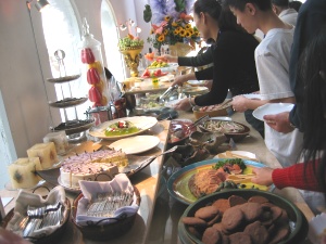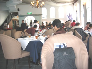 這個是星期天中午到彰化一家頗高級的餐廳吃東西時的場景,教會包下半家餐廳一起慶祝新年與聖誕節。我和Rodney、Kitaro和牧師的兒子(25歲)四個人坐在同一桌上。