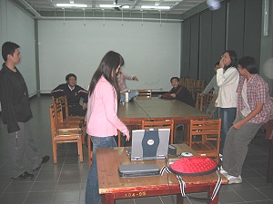 反正我只知道早上我是倒數第二個起床的人,連早餐也沒吃到。今天的行程預計是先去桃園龍潭老街(感謝小咪指正,是挑園大溪,不是桃園龍潭),再來就去看曾經在我日誌上面提過的北海岸台北縣石門山腰處的大型風車。出車前,按照慣例,玩洗黑白遊戲來分配車位。