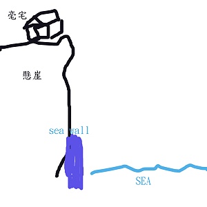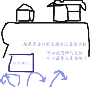 之後,我們就開始討論沙灘下陷的原因,跟美台兩邊的理賠程序等等,他還畫了兩張手繪圖給我看,來解釋海攤屋下陷的原因。可是他覺得畫得很醜,叫我千萬不要放上來……