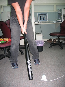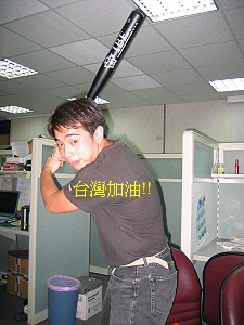 隨著奧運的氣氛逐漸濃厚,公司一群同事組成了壘球隊來玩玩,同事光頭也有參加,他訂的鋁球棒剛到,很高興的拿過來給我們看。