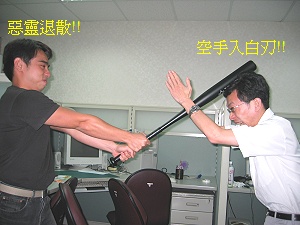 看了看他的鋁棒,我便拿了一顆圓形的webcam放在地上,光頭反應很快,很聰明的擺出了打高爾夫球的姿勢讓我拍…