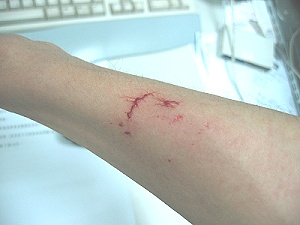 其實撞了這麼一個傷,當時看起來血流如注,說真的一點也不痛。
