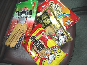 就在我跟光頭玩著球棒時,另一個同事安哥把從宜蘭帶來的名產灑出來餵我們吃:四種口味的牛舌餅。分別是海苔口味、草莓口味、花生芝麻口味跟黑糖口味的。
